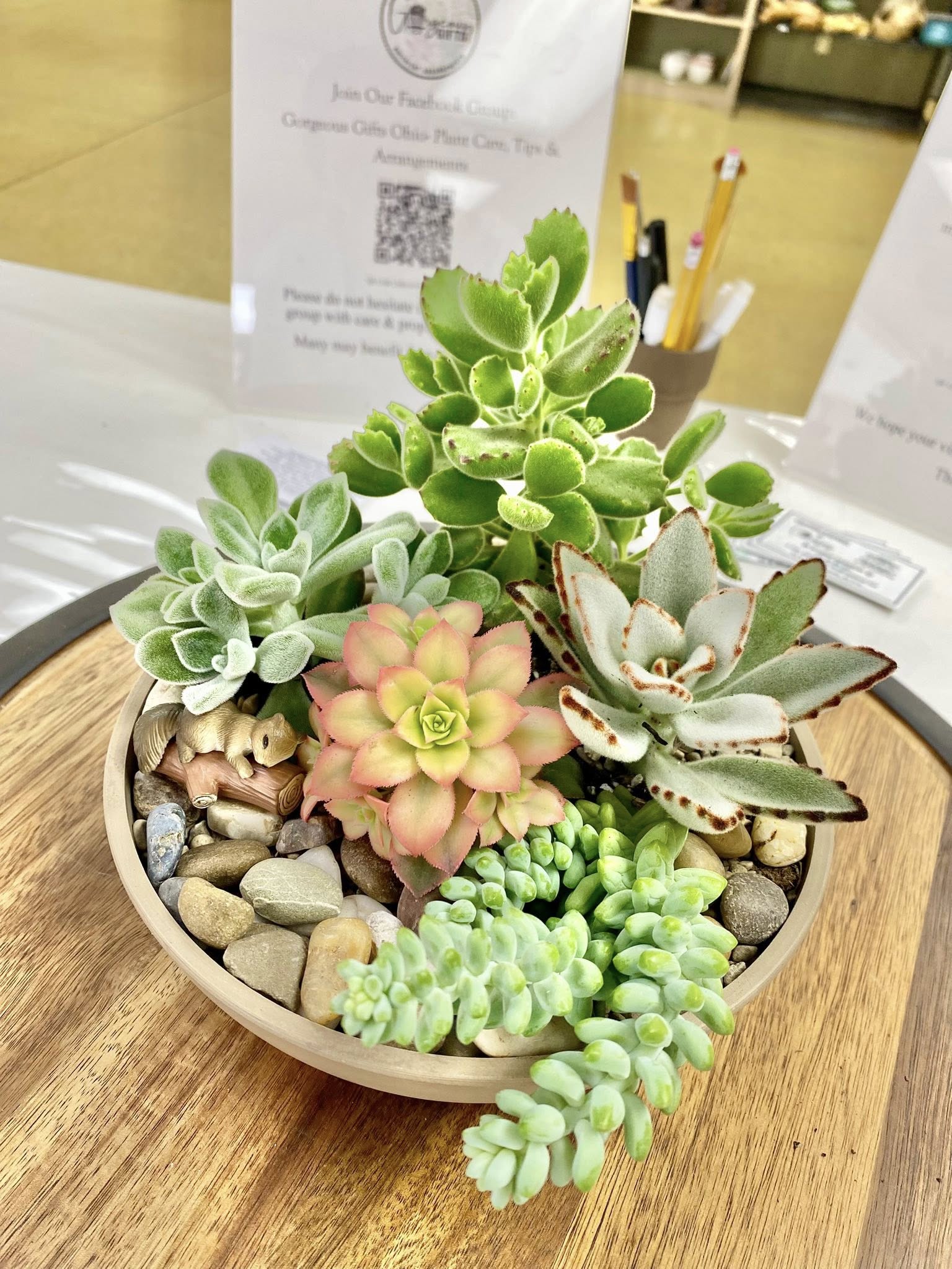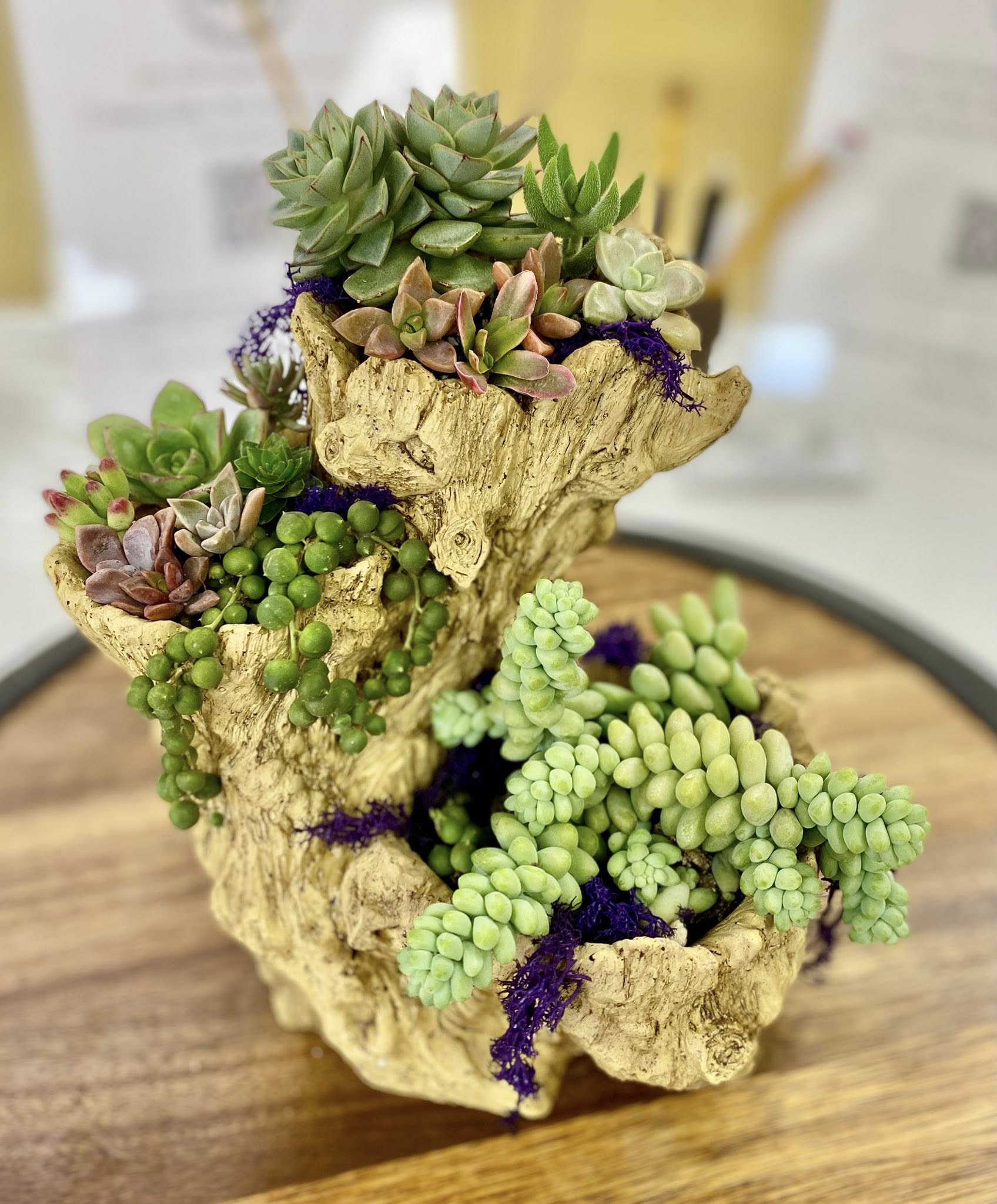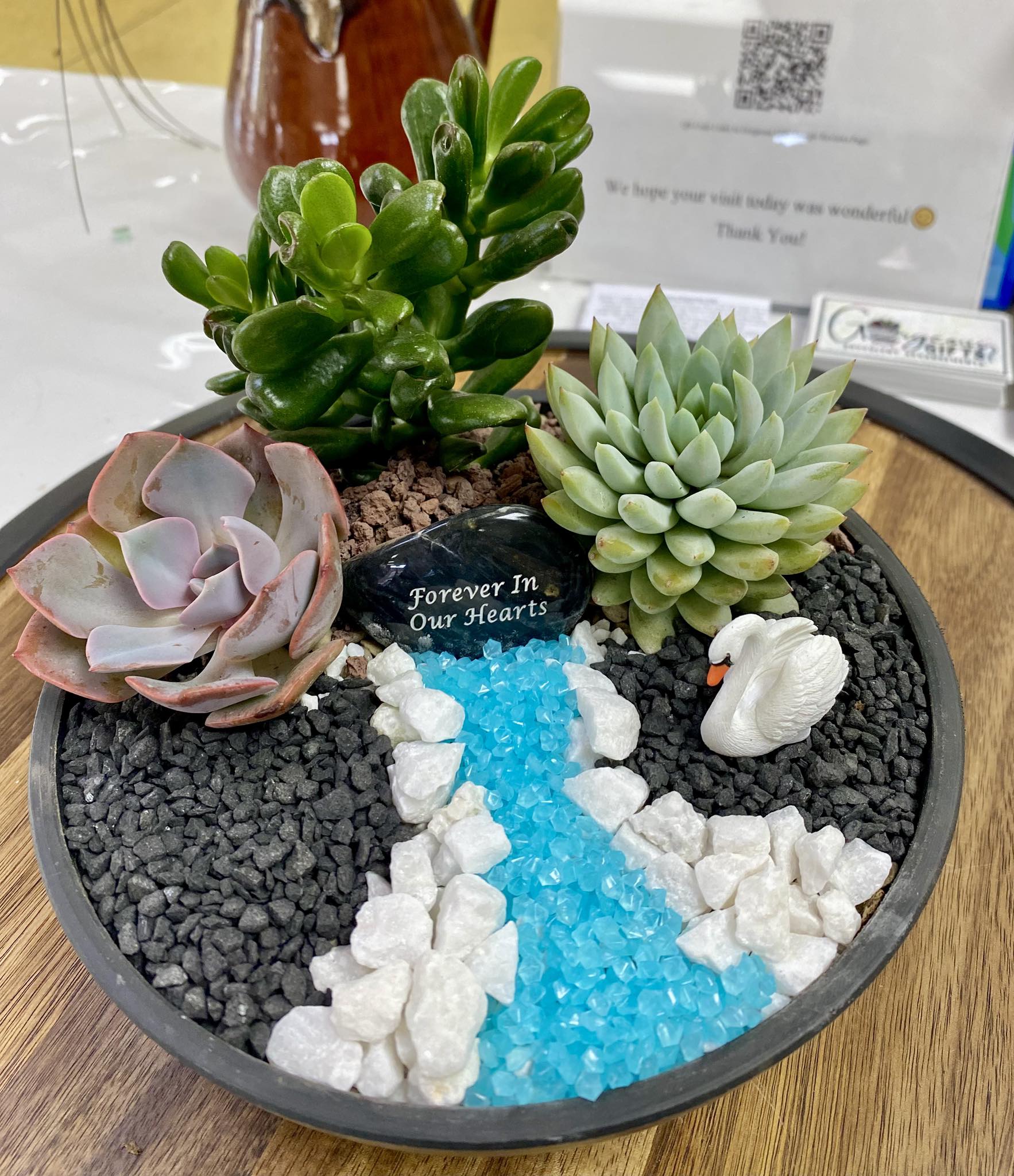 Next comes the fun part—choosing your pieces. You’ll select your pot, decorative figurines and structures, and then hand-pick the perfect succulents for your arrangement or miniature landscape.